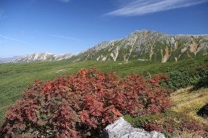 雲ノ平から見える水晶岳とナナカマド