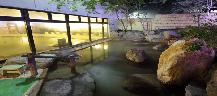 滝と光の露天風呂